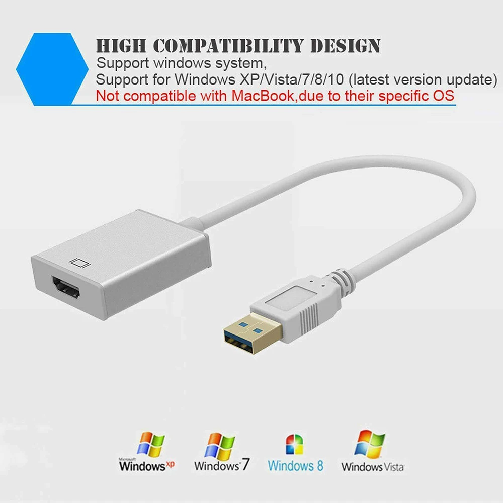 USB 3.0 to HDMI Adapter turns an available USB 3.0 port into an HDMI output, with high resolution 1920×1200 video support (only 800*600 max. at usb 2.0 mode)